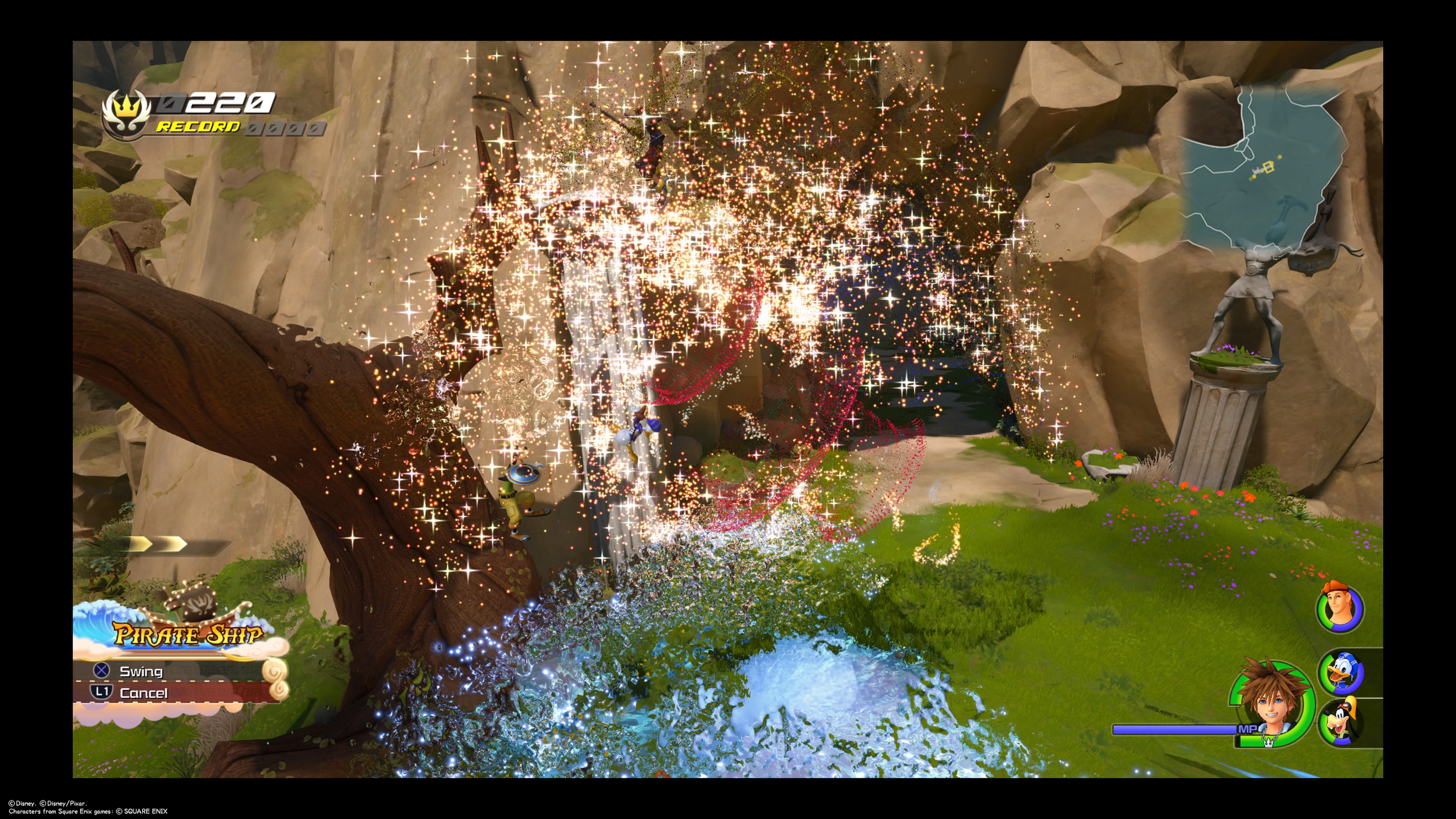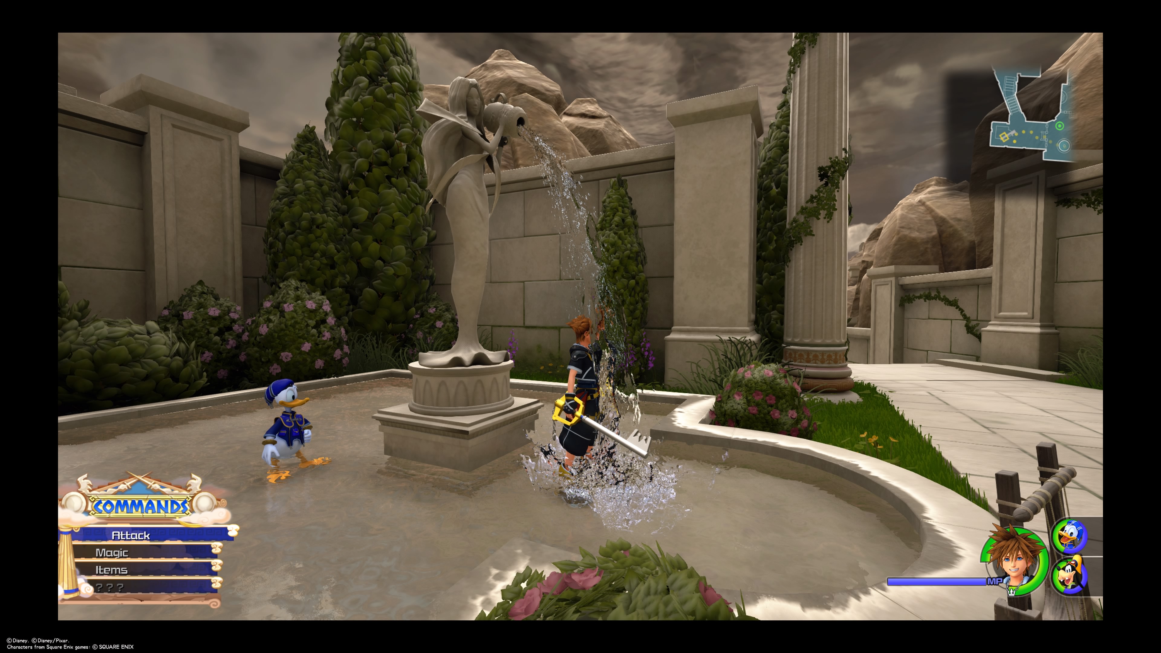 There was a lot of gameplay stuff of running around and exploring Olympus. Sora kind of looks like Sonic when he runs up walls!